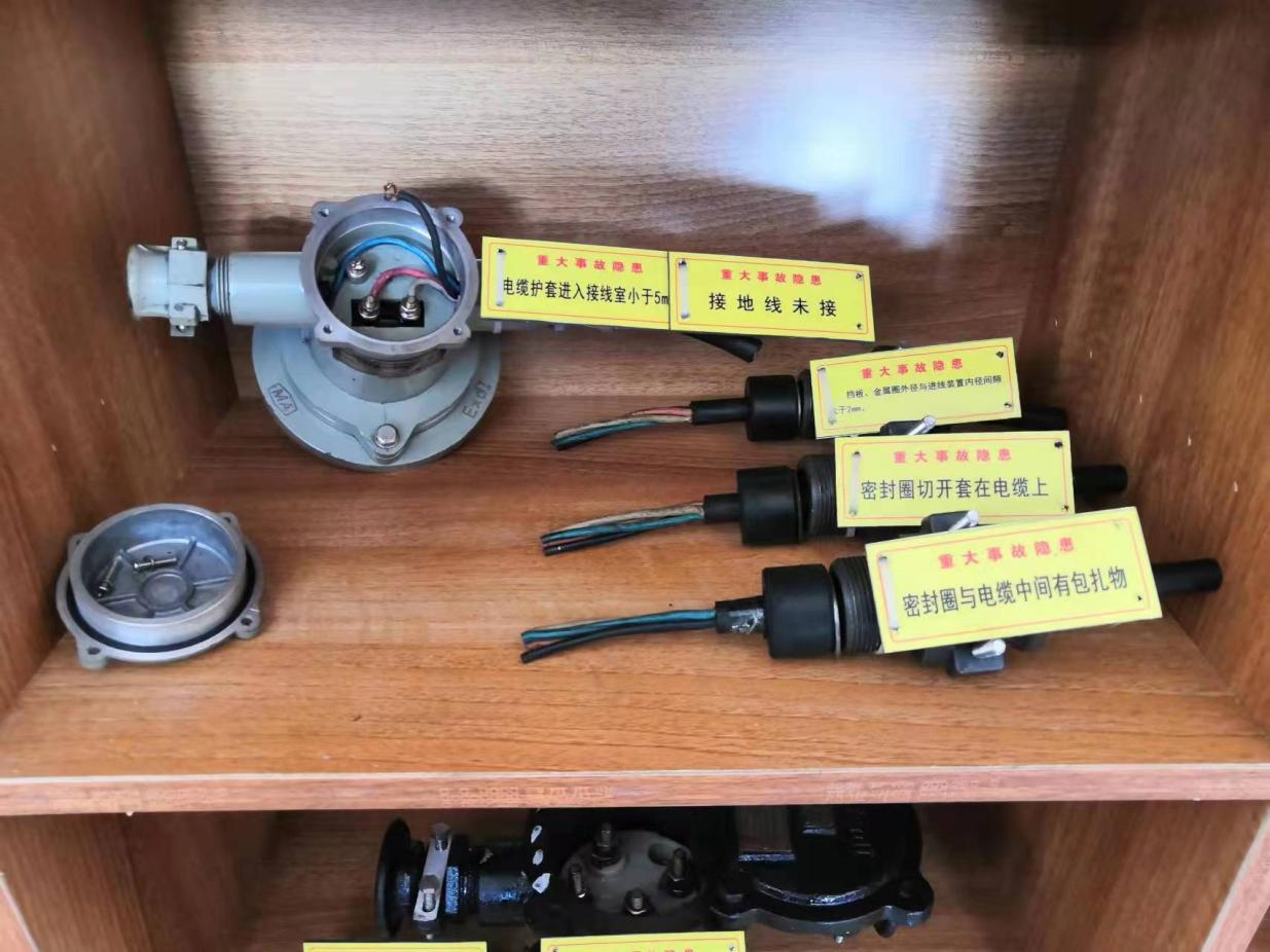機(jī)運(yùn)二隊(duì)設(shè)立了機(jī)電重大事故隱患展臺(tái),內(nèi)容包括井下常見(jiàn)的失爆知識(shí)講解及相應(yīng)失爆實(shí)物圖片,各類皮帶保護(hù)安裝位置簡(jiǎn)介和試驗(yàn)方法,以及相應(yīng)失爆設(shè)備實(shí)物。全隊(duì)人員可利用班前、班后會(huì)進(jìn)行觀看自學(xué),通過(guò)不斷的場(chǎng)景融入提升培訓(xùn)的現(xiàn)場(chǎng)實(shí)效。同時(shí)周一由隊(duì)干及機(jī)電班組長(zhǎng)進(jìn)行現(xiàn)場(chǎng)教學(xué),提高全體職工在電氣設(shè)備失爆和皮帶保護(hù)專業(yè)方面的知識(shí)能力,進(jìn)而加強(qiáng)崗位現(xiàn)場(chǎng)機(jī)電重大隱患排查能力。