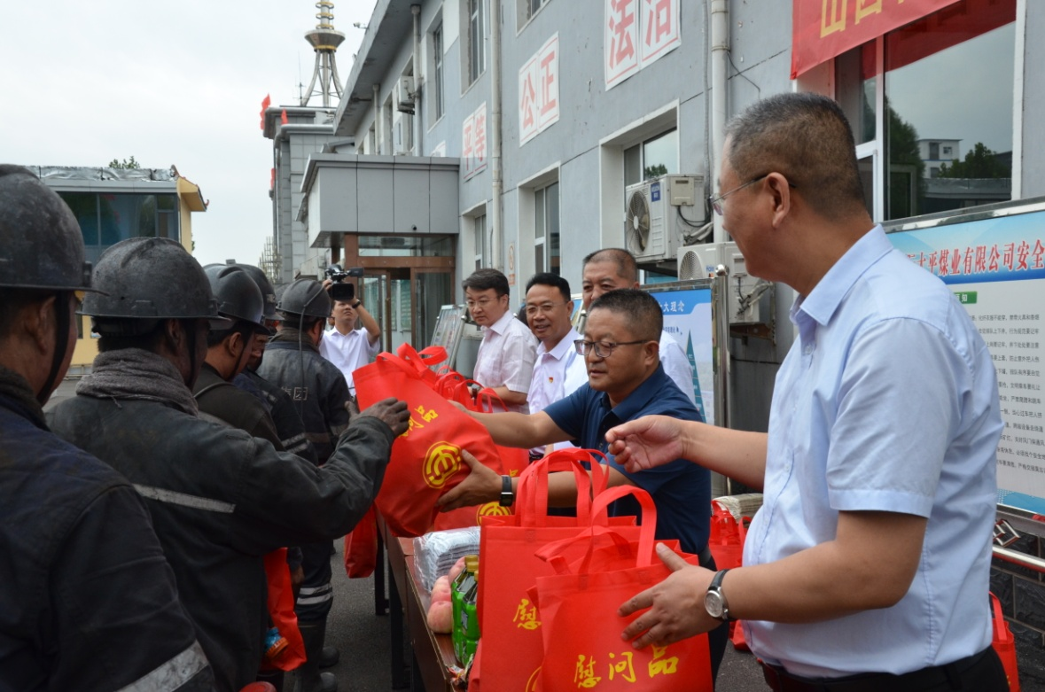 活動開始前,山西省煤礦工會副主席王建國、山煤國際工會主席劉保龍等相關領導,深入井口慰問,親手將一份份滿含心意的慰問品送到了一線職工的手中,并叮囑他們要愛護身體,注意安全。