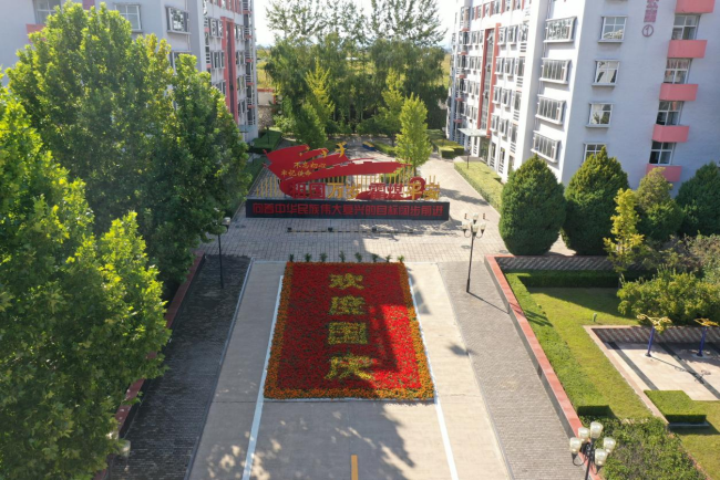 在霍爾辛赫煤業礦區公寓樓前,長方形的花壇格外引人注目,鮮艷的鮮花在陽光下格外艷麗,花團錦簇的花壇營造了一種溫馨、喜慶、和諧、愜意的氛圍。尤其是歡度國慶四個大字,表達了霍爾辛赫煤業對祖國的熱愛和祝福,彰顯出全體干部職工團結、奉獻、求實、進取的新焦煤精神。