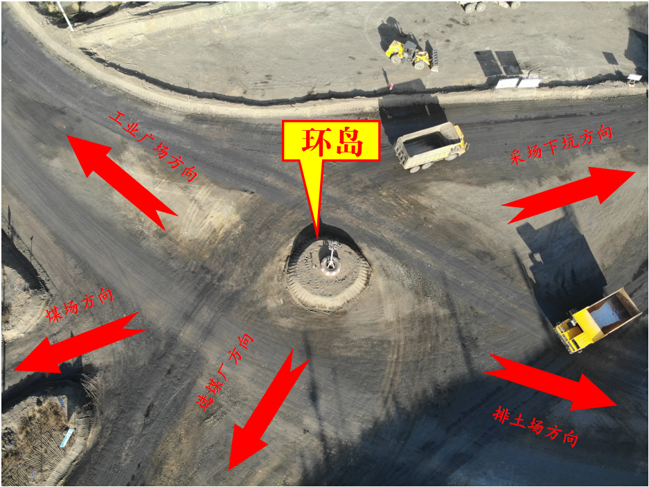 多年來,980交叉路口作為一個五岔路口,連接著工業廣場、采場、排土場、煤場和選煤廠五個重要場所,承擔著極為重要的交通樞紐任務,但是由于現場車流量較大,管理一直是個大問題。通過與其他露天礦的互相交流溝通,河曲露天煤業決定在此地建立環島以緩解交通壓力,提高交叉路口的安全性。