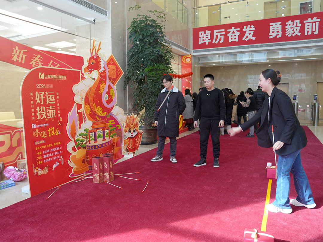 在投壺、飛鏢、幸運轉盤等“微運動”區,集競技性、趣味性和觀賞性于一體,更是一派熱鬧景象。有的人一投即中,贏得滿堂喝彩;有的人則不斷調整姿勢和力度,努力取得更好的成績;排隊的干部員工一個個摩拳擦掌,準備大顯身手,每個人都躍躍欲試,勇于挑戰自我,歡慶元宵佳節。